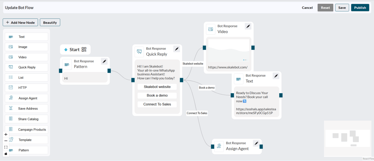 Create your custom WhatsApp Botflow in SkaleBot using different nodes
