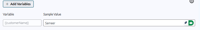 {{customerMobile}},{{customerName}}, etc..Assign a Sample Value to preview messages in real time.