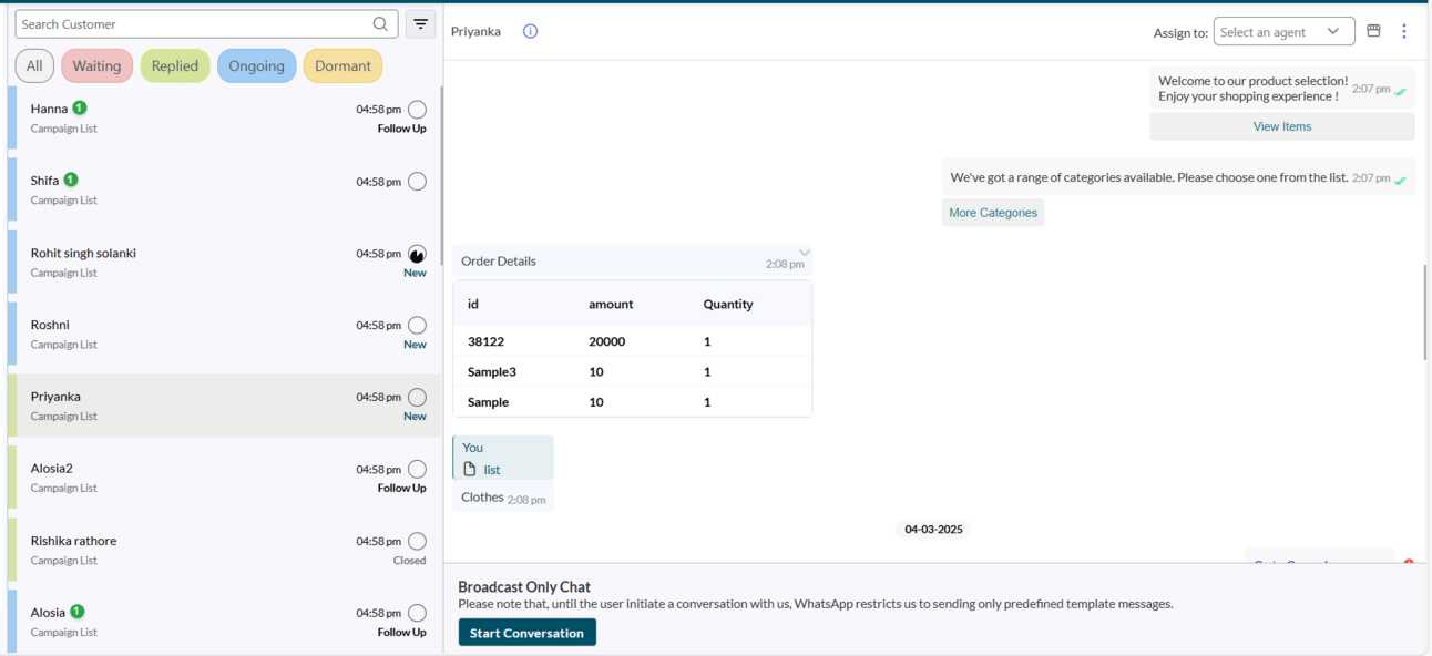 A structured, intelligent interface that takes over your customer chats after WhatsApp chatbot, routing every lead into an organized inbox—where your agents can seamlessly step in and close the loop.